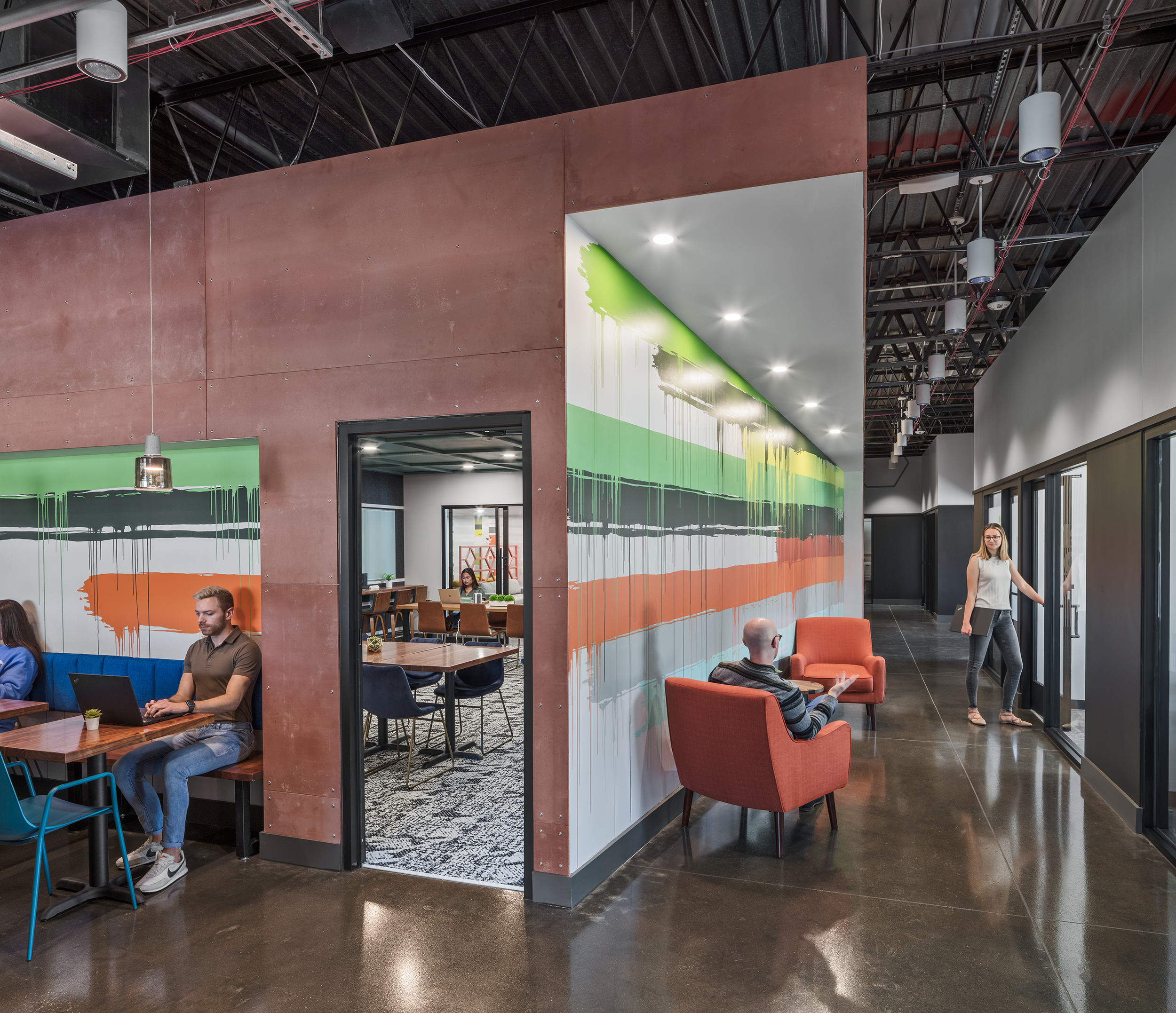 Located in Cincinnati, Ohio, COhatch Kenwood is placed at the corner of a mall. Designed as masses within the space, the voids were developed as congregation points while the masses emphasized privacy. Unique to this site was the addition of a restaurant component. Our design team was involved in developing the brand and design for this component as well as designing for ways for the COhatch side and restaurant side to interact.